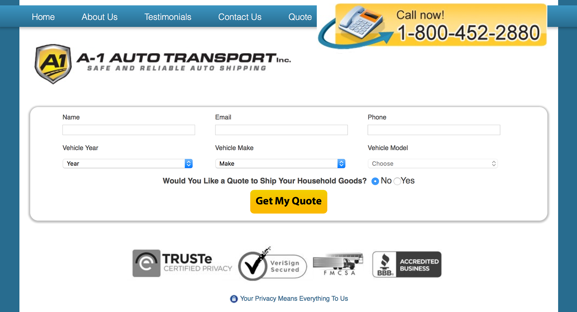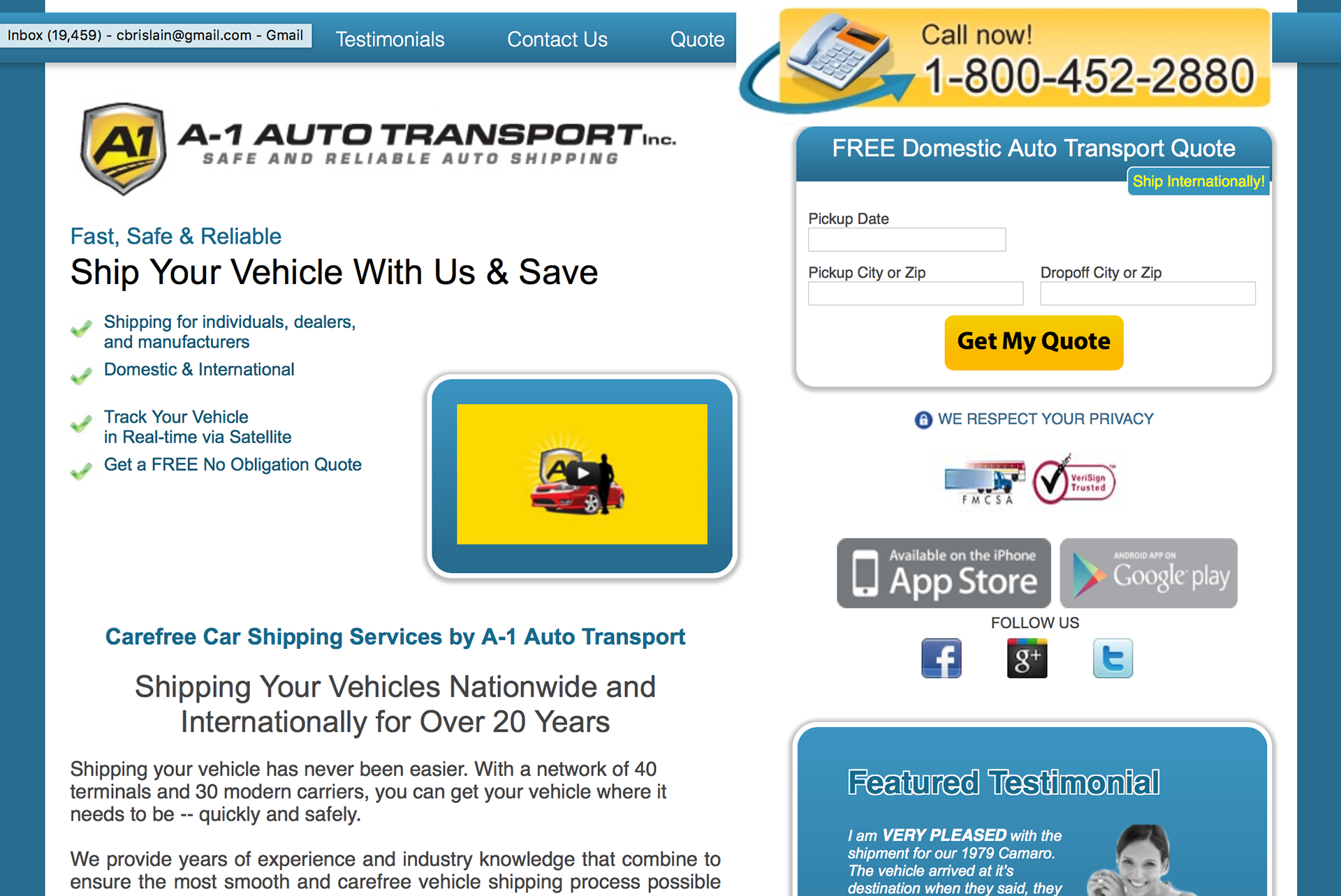 http://www.a1autotransport.com Created website for TaylorOnlineMarketing.com from design mockups. Includes interactive form with AJAX validation, auto-completion on city/state entry, etc.